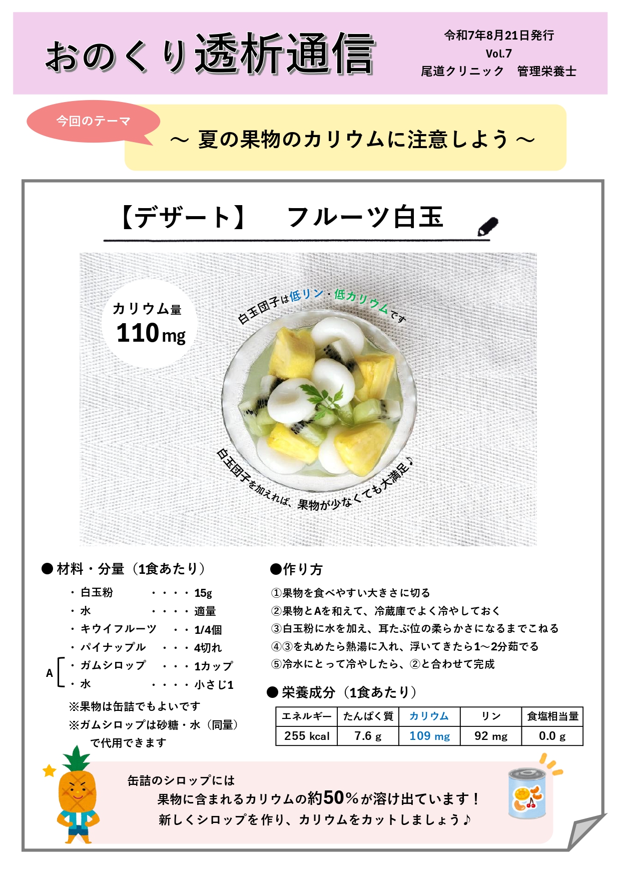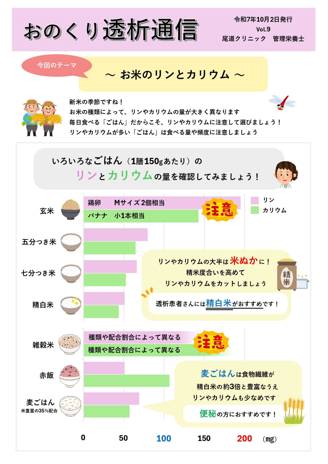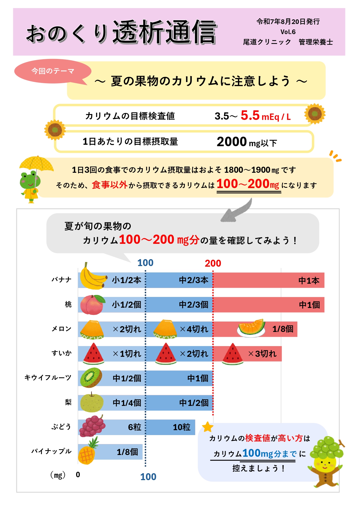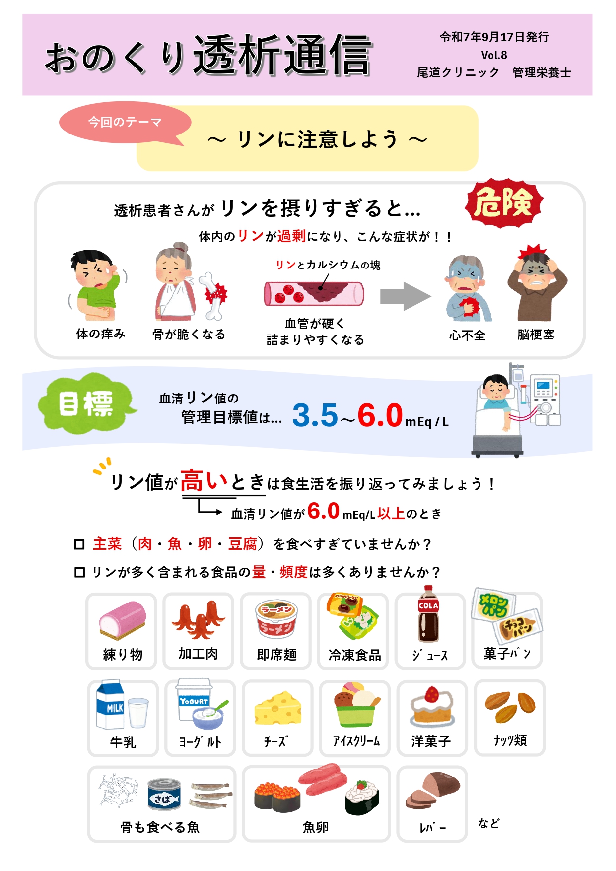 現在、透析治療を受けられている方は「おのくり透析通信」をご覧ください。